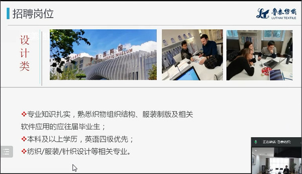 为进一步推进就业工作的全员化、全过程化进程,为毕业生提供优质就业信息和就业服务。5月15日,艺术设计学院组织相关年级毕业生参加了2022年纺织服装人才线上交流会。